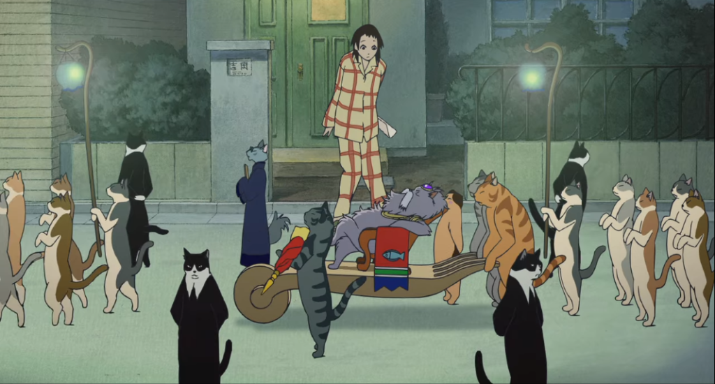 El diseño de los personajes es muy correcto, pero destaca especialmente el diseño de los gatos quienes consiguen ser mucho más expresivos que los humanos. Concretamente, me ha gustado mucho el diseño de los gatos guardaespaldas, sencillamente magnífico. Como único defecto, para mí, observaría las patas que cuando están erguidos las colocan de una forma que me resulta extraña. Asimismo, me ha parecido muy bonito el diseño del país de los gatos.